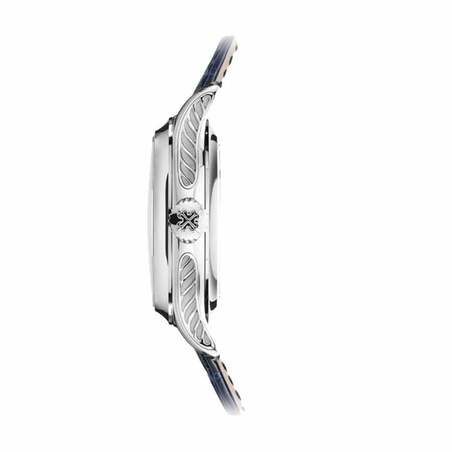 The Patek Philippe Grand Complications Minute Repeater Tourbillon Perpetual Calendar 5207G-001 Replica is a high quality watch. It features a 904L stainless steel case and bezel, both in white gold, and a sapphire crystal. The movement is an automatic caliber R TO 27 PS QI with a power reserve of 60 hours and a precision of (-3/+3 sec/day) within COSC certification limits. The bracelet is made of crocodile skin in a blue color with adjustable links and a 904L stainless steel pin clasp.