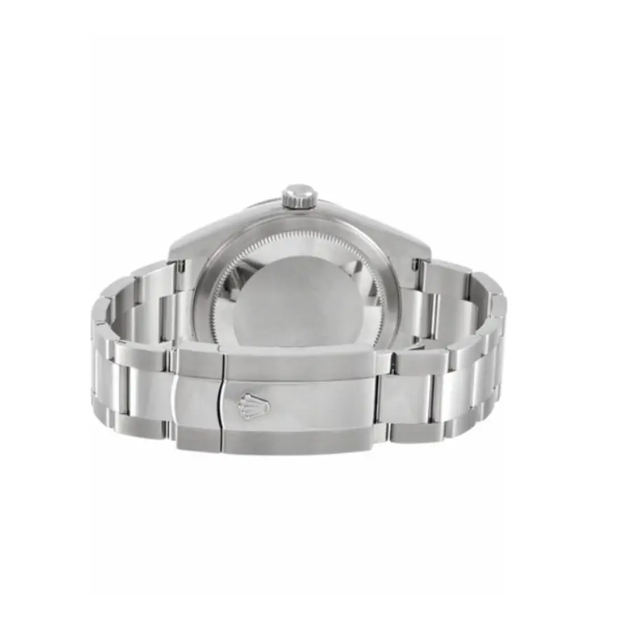 The 42 mm case is crafted from high-grade Oystersteel and paired with a sleek fluted white-gold–style bezel, mirroring the elegant yet sporty character of the genuine model. The Oyster bracelet provides durability, comfort, and refined aesthetics, while sapphire crystal ensures long-lasting clarity and resistance to scratches.
