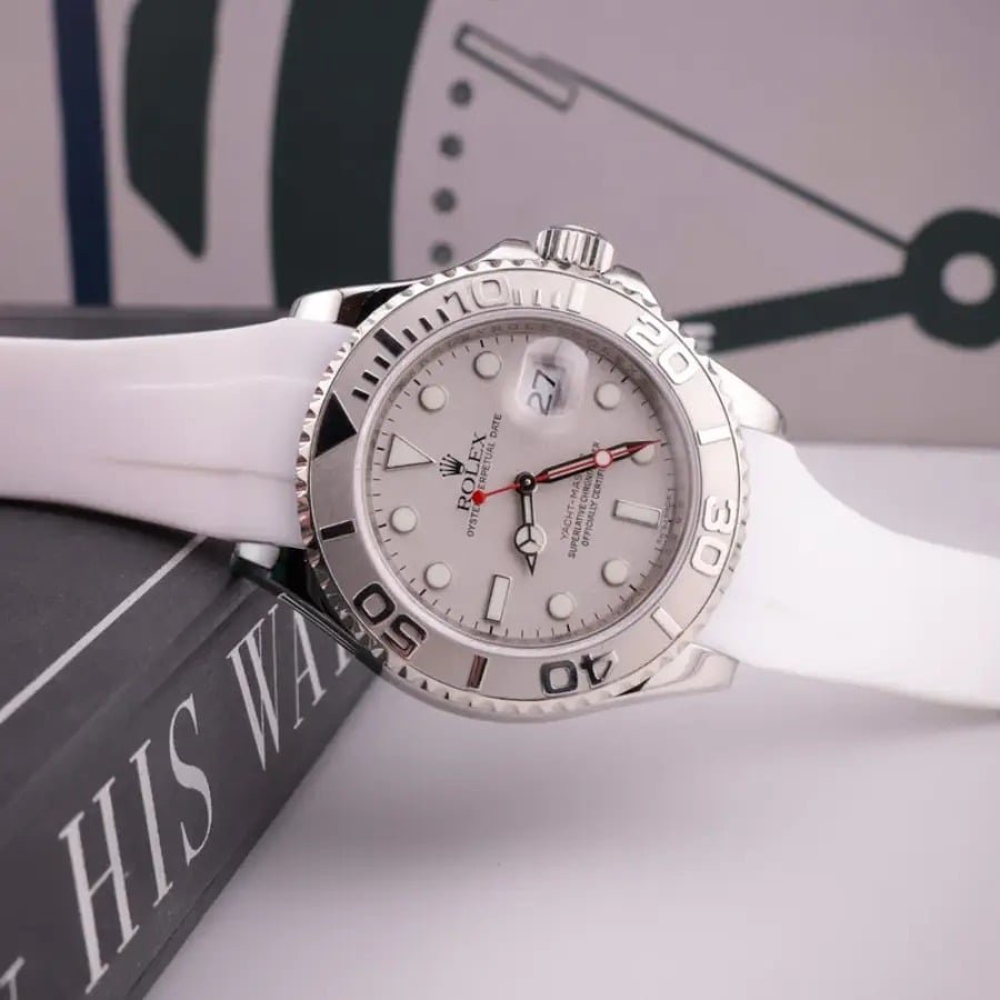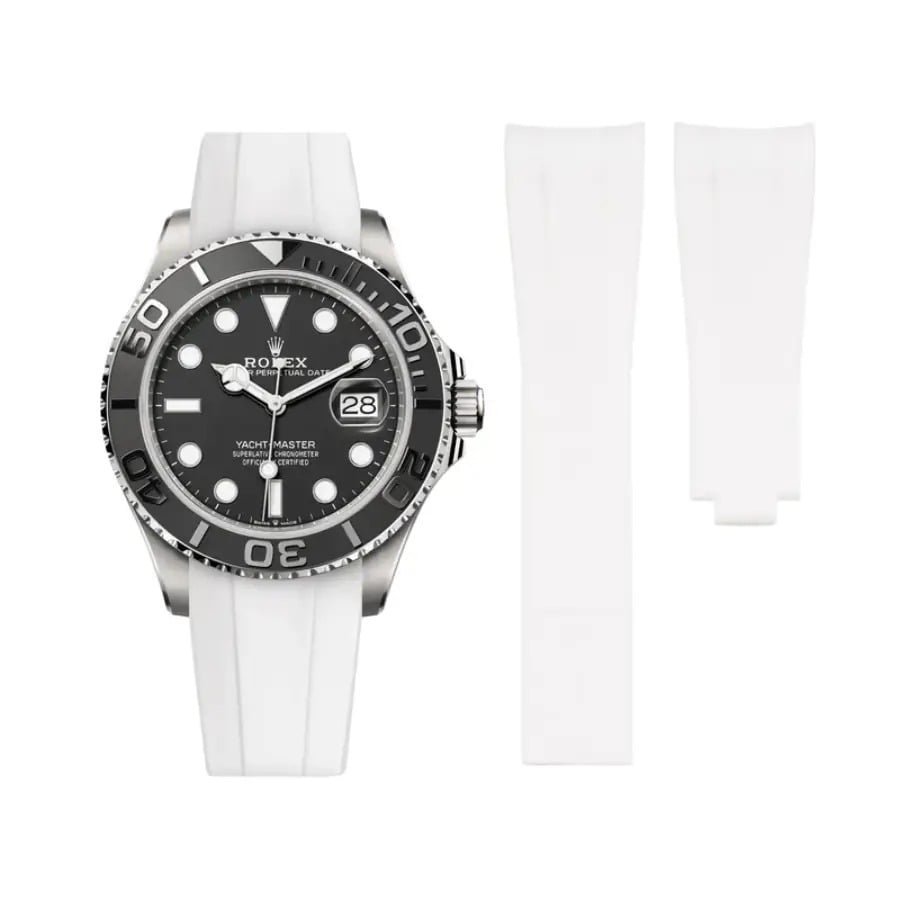 The White Rubber Strap for Rolex Yacht-Master is a premium replacement designed to enhance comfort while adding a clean and modern touch to the iconic Yacht-Master design. Crafted from high-quality flexible rubber, it offers excellent resistance to water, sweat, and daily wear, making it ideal for both marine environments and everyday use.